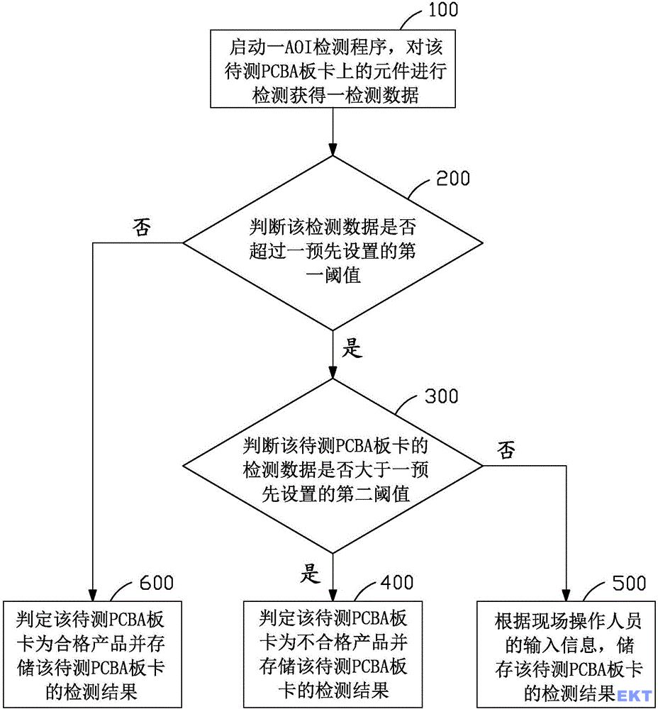 過程300:判別該待測PCBA板卡的檢測數據是否大于一預先設置的第二閾值,假如是則履行過程400,假如不然履行過程500,答應現場操作人員進行人為修正檢測成果;