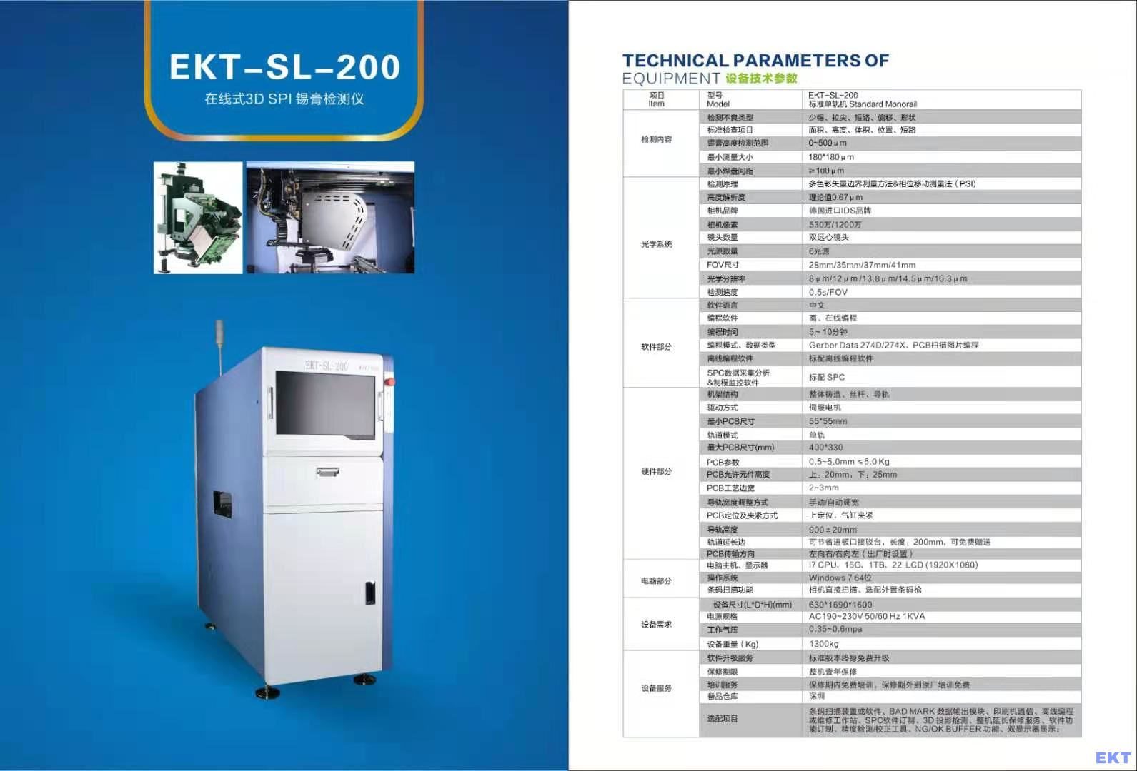 SPI銷售專線:13714289164(微信同號)雷小姐 深圳易科訊科技有限公司(EKT)成立于2006年,注冊資金:人民幣1000萬。是一家專業從事SMT表面貼裝行業的視覺光學檢測的AOI及3D SPI錫膏測厚儀自動化檢測設備自主研發設計、生產、銷售與售后服務的方案制造生產商。主要產品為AOI自動光學檢測儀、包括:(在線式AOI.離線式AOI、在線雙軌AOI、上下雙面檢在線AOI光學檢測儀、加大尺寸非標訂制AOI及3DSPI錫膏厚度測試儀設備等) 自動錫渣還原機(SRS)、馬達自動測試儀及SMT周邊輔助產品。EKT設備行銷歐美及東南亞國家,并贏得良好聲譽。EKT易科訊秉承以人為本的人文精神,信奉誠信、創新、專業、精致的生存和發展。